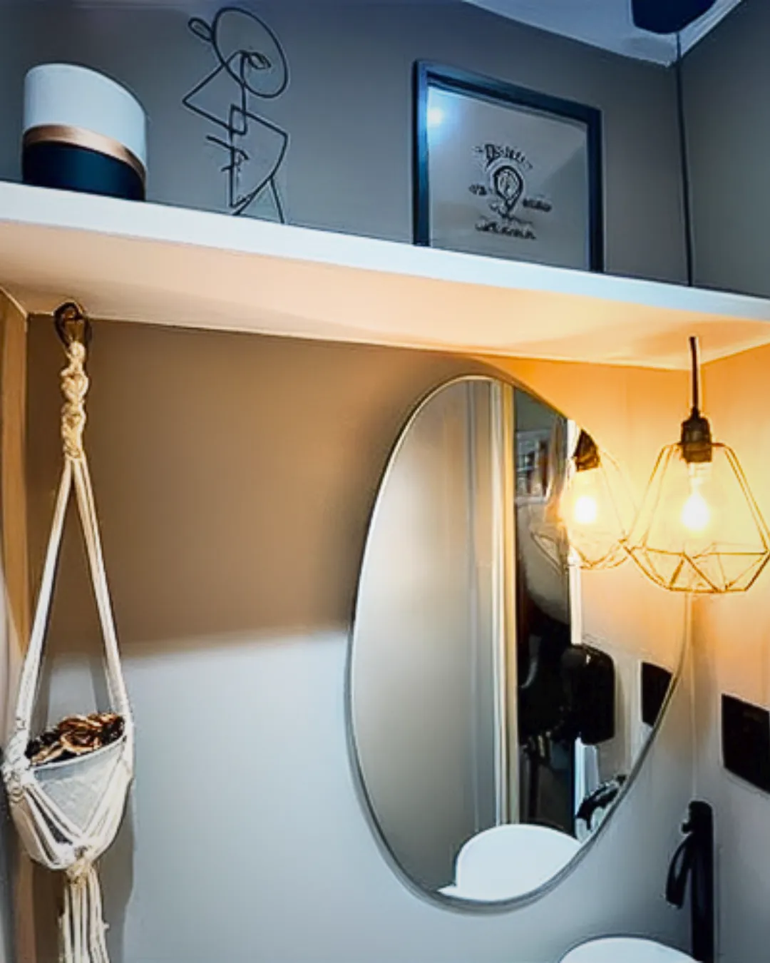 Espelho Decorativo Orgânico Delta de Parede c/ Moldura em Couro Sintético